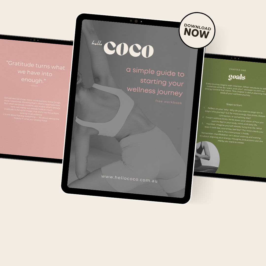 The free hello coco Wellness Workbook is designed to guide you gently yet purposefully through your personal wellness journey.